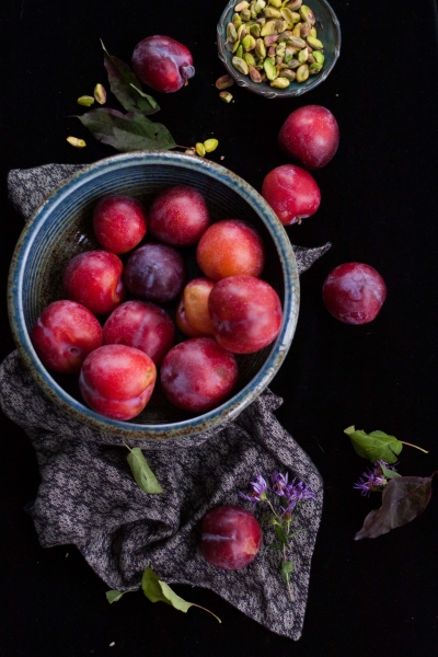 1,2 kg slyvų, supjaustytų skiltelėmis 50 g cukraus