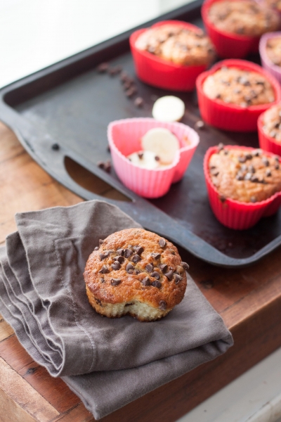 Sift together flour, salt and baking powder.In a separate bowl mach and cream bananas; Add flour mixture to butter-egg mixture, alternating with banana, in five separate additons: flour, banana, flour, banana, ending on flour. Fold in chocolate chips.