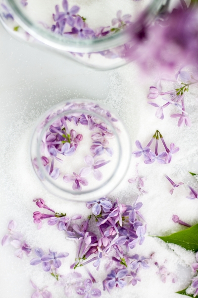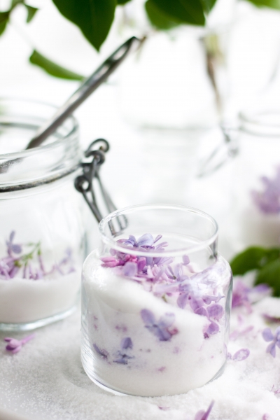 Po žvakučių, ir pyragų, ir aibės kitų įkvepiančių, svajingų skanuliukų tas pats likimas mane atvedė prie šito grožio: alyvų žiedais kvepiančio cukraus.