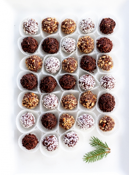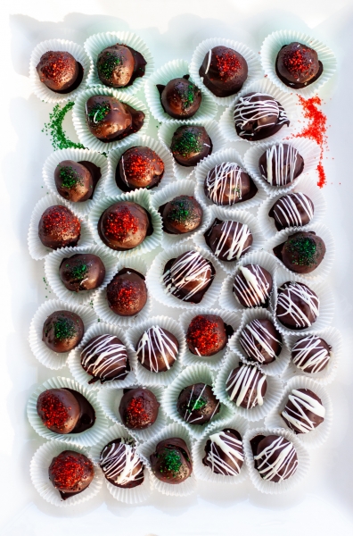 Šiemet iškepiau vieną tortą, savo tradicinį Juodąjį Mišką, nusinešiau į savo darbovietės mini-baliuką. Dar planavau kepti sausainius, nes Kalėdos. Bet finale apsiribojau šokoladiniais triufeliais ir suaugusiais rutuliukais: Rum Balls & Oreo Truffles, pusiau sausainiai, pusiau saldainiai, visai nebevaikiški, super paprasta ir greita pagaminti, ir super šventiniai ir skanūs.
