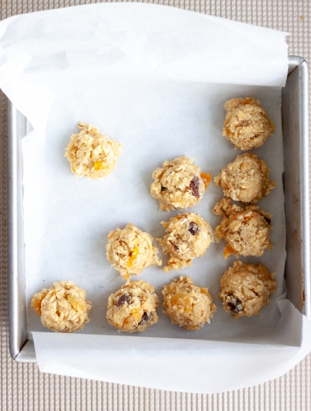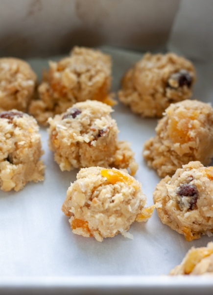 Iškočioti antrą tešlos skritulį, jį supjaustyti 1,5–2 cm pločio juostelėmis. Juosteles kloti ant sviestiniu popieriumi ištiestos skardos. Skardą su juostelėmis dėti įšaldiklį.