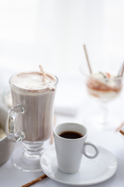 Strong hot coffee or hot chocolate