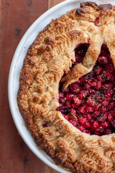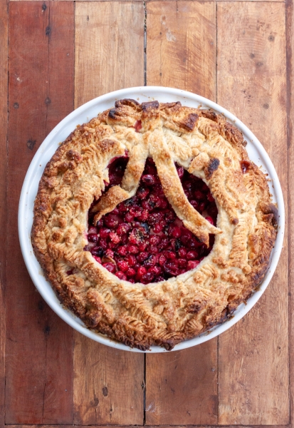 Transfer apple filing into prepared pie shell, mounding apples slightly higher in the center. Cover apples with cranberry mixture, spread into even layer.