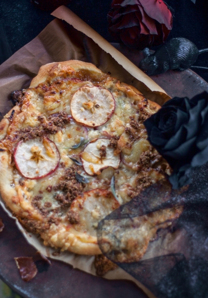 Apple and Onion Pizza with Pumpkin Seed Pangrattato