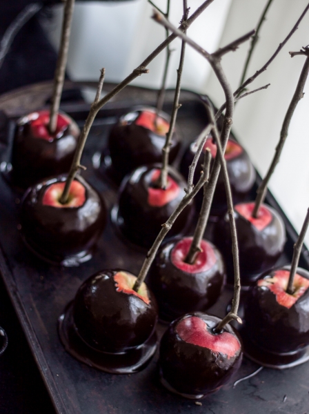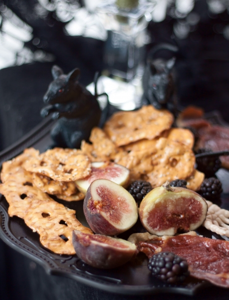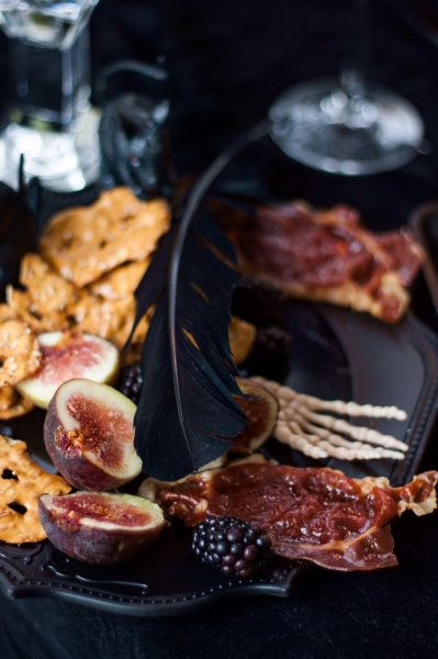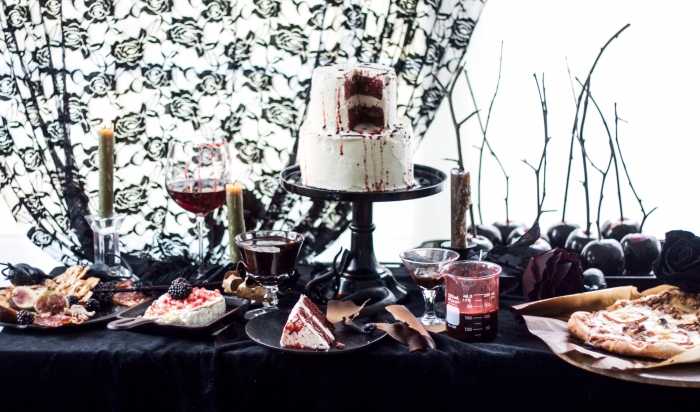 Aš baisiausiai myliu Halloween’ą, visą juodą karnavališką šios šventės šou: naktinį pasivaikščiojimą su vaikais, baisuokliškas dekoracijas, žvakes, leipsnelėmis žybsinčius išpjaustytus moliūgus, kraują, mirtį. Šią fotosesiją turėjau paruošti iš anksto, nes toks yra blogerio gyvenimas. Bet aš mielai galėčiau viską vėl iš naujo pakartoti šį savatgalį, nes tokių kulinarinių scenų ruošimas man yra grynų gryniausias kaifas.