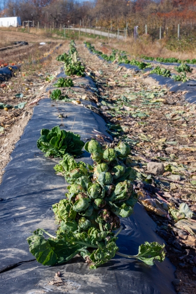 Indian Creek Farms darže aš ir Izzy prisiraškėm briuselio kopūstėlių; jau nebedaug jų belikę, sezono pabaiga. Kopūstėliai gražūs, kaip gėlės. Jauno panelės su kaukėm juos fotografavo. Aš nefotografavau, nes nepasiėmiau fotiko. Prisiraškiau pilną krepšį, mažesnių ir didesnių, visokių; paragavau kelis tiesiog lauke – svajonė! Minkštučiai ir visai nekartūs. Namuose jų prikepiau pilną didelę keptuvę, su kiaulienos šonine ir svogūniukais, ir makaronų išviriau, bet tik dėl vaizdo. Patiekalo esmė šį kartą buvo kopūstėliai.