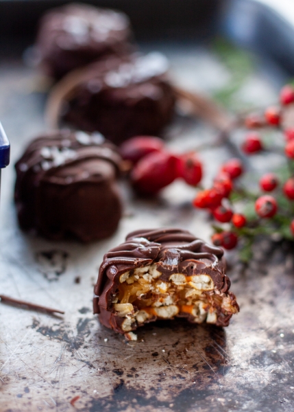 Spoon 2 teaspoons of the coconut caramel mix onto each pretzel and then sandwich together with another pretzel, place onto prepared baking sheet. Freeze for 15-30 minutes.