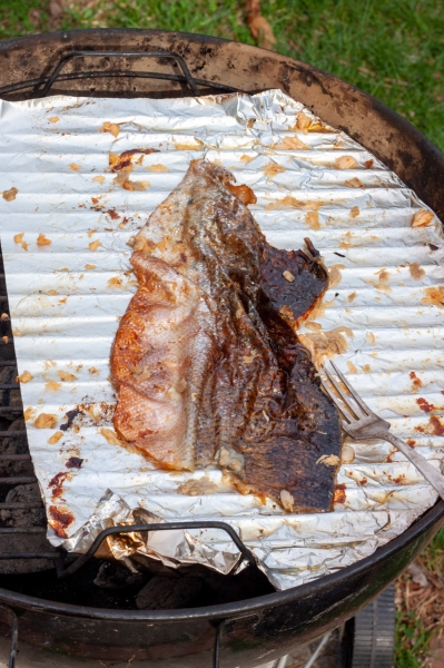 Tai va, naujausiame Cook΄s Illustrated numeryje užmačiau gana detalų paaiškinimą, kaip žuvį išrūkyti paprastame anglimis kūrenamame grilyje. Nieko per daug nelaukus nutariau iškart šitą metodą išbandyti, savo senąjame ir daug ko mačiusiame Weber grilyje.