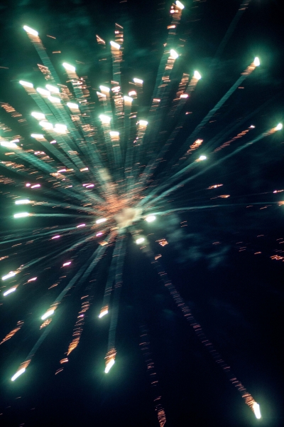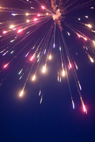 Į fejerverkų šou susirinko gana graži grupelė artimiausių Jono bičiulių. Aš įsikūriau netoliese, nes net neabejojau, kad mano buvimo ten prireiks (skaitykite toliau). Šiek tiek palūkūriavom, kol pradėjo temti. Ir tada viskas prasidėjo. Fejerverkai buvo jėginiai. Aš nežinojau, ko tikėtis, nes tokių dalykų niekada iki šiol nesu nei prikusi, nei šaudžiusi, bet tai, ką pamačiau, pranoko bet kokius lūkesčius. Vaikai suskėlė tokį šou, kokių reta, trukusį beveik dvi valandas, nuo 21:00 iki 23:00 val.