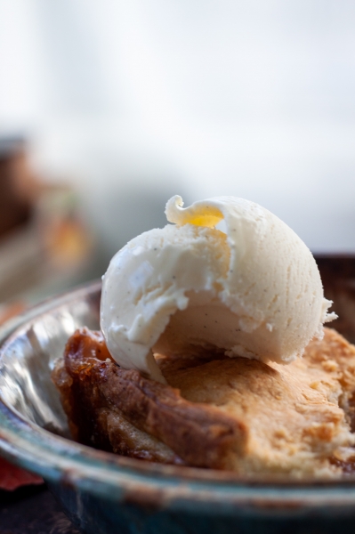 Bake for about 45-50 minutes on the bottom shelf of the oven until the crust is golden brown and the filling is bubbling. Remove pie from the oven and place it on a wire rack to cool. Serve warm or at room temperature, with whipped cream or a scoop of vanilla ice cream or whipped cream.