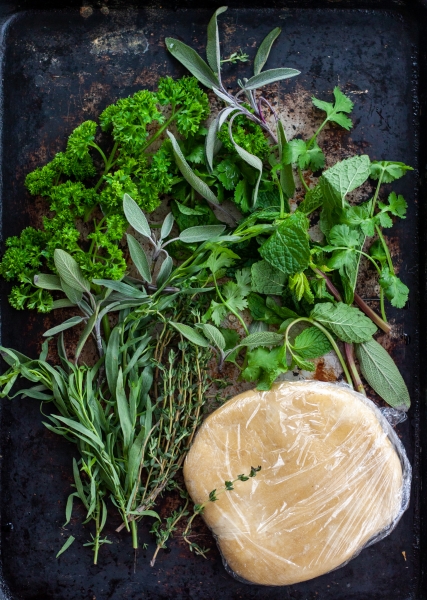 Fresh herbs: mint, parsley, thyme, cilantro, tarragon