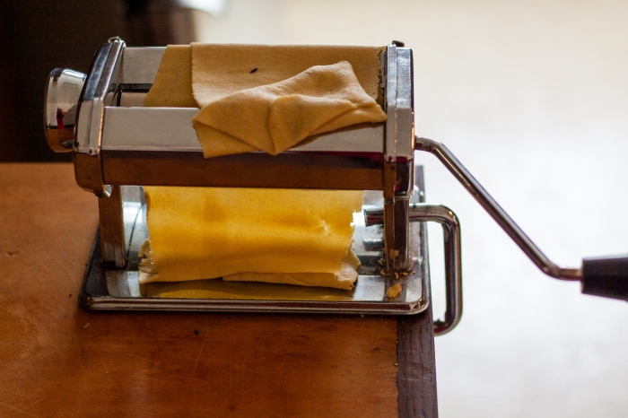Sekmadienį visą dieną lijo, tai aš užsiėmiau makaronų tešlos laminavimu ir raviolių virimu.