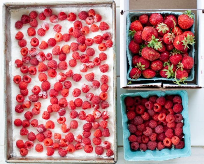 Scatter raspberries on top of sugar.