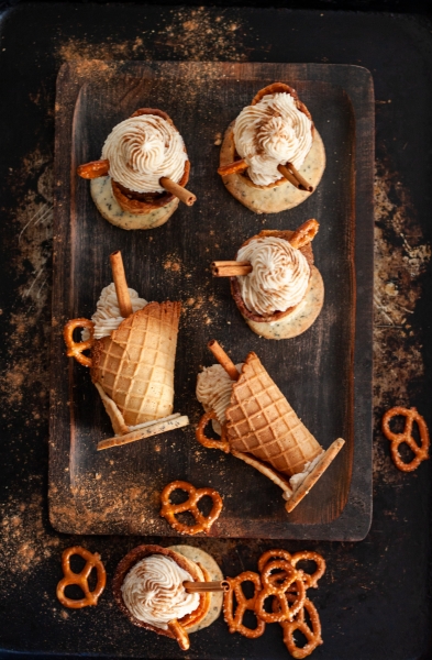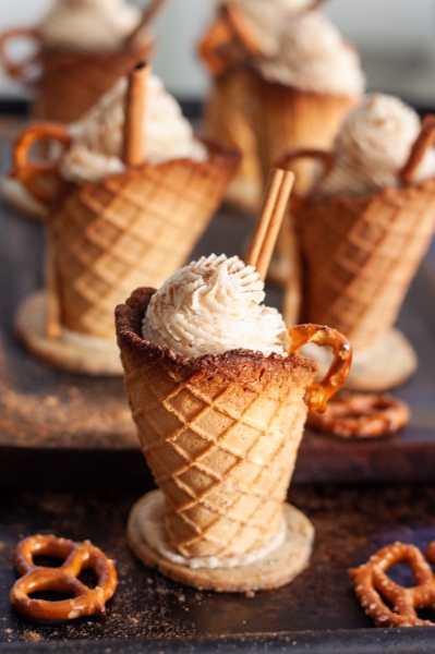 Beat butter until creamy, add powdered sugar, heavy cream, spice mix and salt. Beat until uniform and thick enough to pipe or spread. Use right away, to frost the cooled cupcakes.