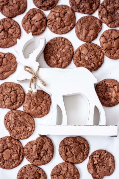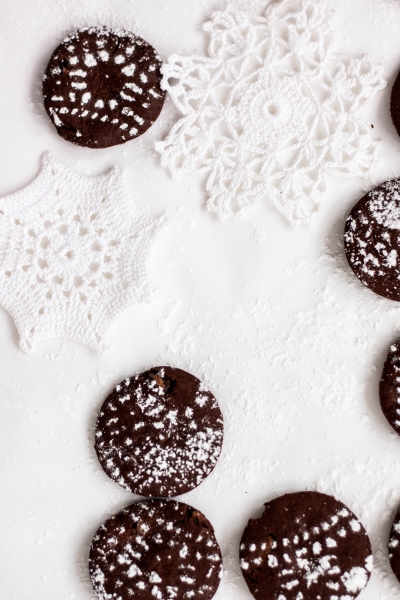 Iš atšalusios tešlos fornuoti apvalius sausainius, dėti ant sviestiniu popieriumi ištiestos skardos, tarp sausainių paliekant 5-6 cm tarpus. Kepti 170oC orkaitėje maždau 8-10 minučių, kol sausainių paviršius lengvai apdžius. Neperkepti. Traukti iš orkaitės. Sausainius palikti ant skardos kol pilnai atvės. Laikyti kambario temperatūroje sandariai uždarytame inde.