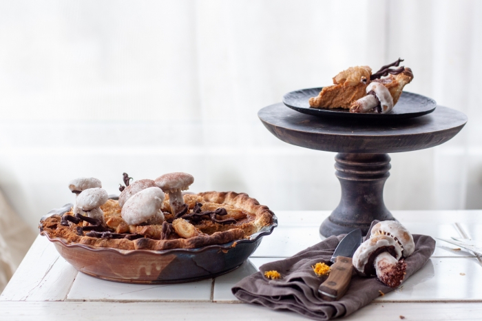 Kol sausainiai dar karšti, aštriu peiliu atsargiai išskobti ploną tešlos sluoksnį kepurėlių apatinėje pusėje. Palikti kad pilnai atvėstų.