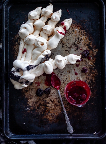 Place one meringue circle on a plate or cake strand. Spread a layer of cream filling, drizzle with blackberry syrup. Continue layering until all meringues and all filling is used up. Drizzle finished Pavlova with remaining berry mixture. Serve right away.